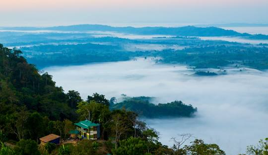 The designation of Sajek Valley is derived from the Sajek River, which originates from the Karnaphuli River.[1] Previously considered one of the most remote regions due to its challenging steep terrain and lack of significant economic activity,[4] the valley has settlements dating back to 1885.[5] Tourism commenced in the early 2010s, following the establishment of a road network connecting the valley to the rest of the country. The construction of this road was undertaken by the Bangladesh Army and took approximately 10 years to complete. As of 2020, there are 83 registered resorts in the region, up from six in 2016.[4] In 2020, tourism was temporarily halted for five months due to the COVID-19 pandemic.[6] In late February 2025, a fire broke out at a tourist resort in Sajek and completely destroyed 32 resorts and cottages, 36 residential houses, six restaurants and 20 shops